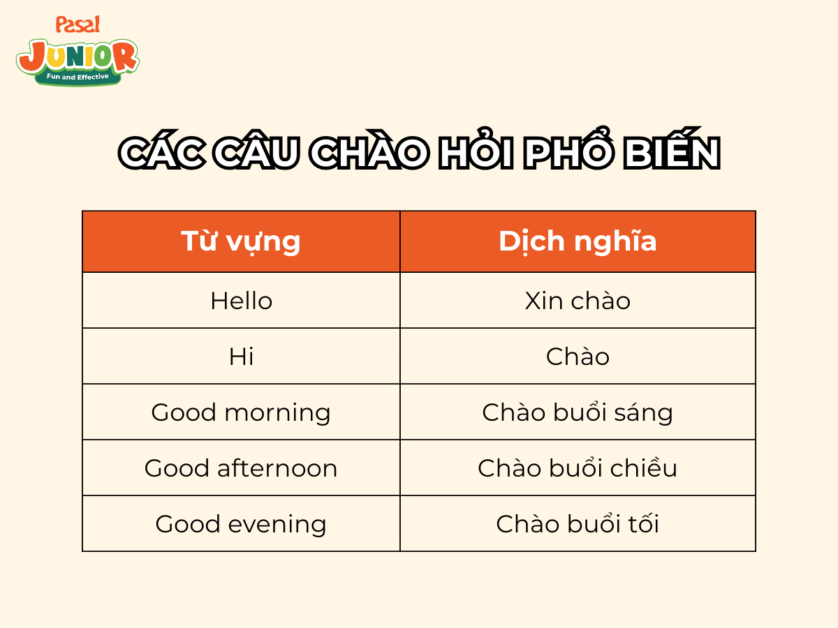 Trong hành trình học tiếng Anh của trẻ em, việc nắm vững các mẫu câu giao tiếp cơ bản là rất quan trọng. Dưới đây là tổng hợp hơn 60 các mẫu câu giao tiếp tiếng Anh cơ bản cho bé, được Pasal Junior phân loại theo chủ đề, giúp trẻ dễ dàng học và áp dụng trong đời sống hàng ngày.