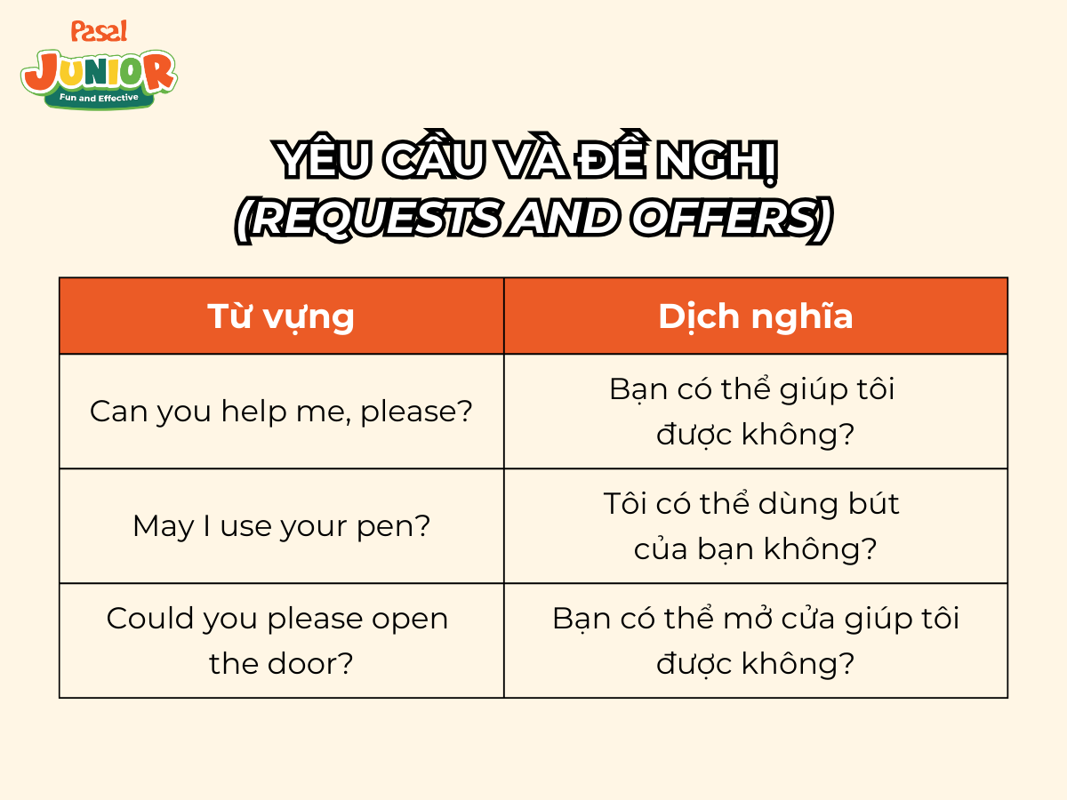 Trong giao tiếp, việc biết cách yêu cầu giúp đỡ hoặc đề nghị một sự hỗ trợ cho người khác là rất quan trọng. Điều này không chỉ giúp trẻ trở nên tự lập hơn mà còn phát triển kỹ năng xã hội.